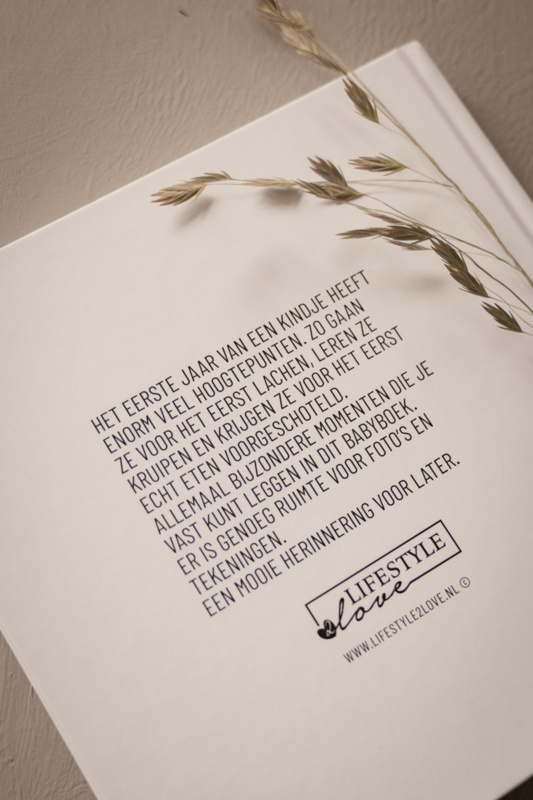 Het eerste levensjaar van je baby zit vol onvergetelijke mijlpalen: de eerste lach, de eerste woordjes, leren kruipen en het ontdekken van een eigen karakter. Met dit prachtige babyboek eerste jaar van Lifestyle2Love leg je al deze bijzondere momenten liefdevol vast.