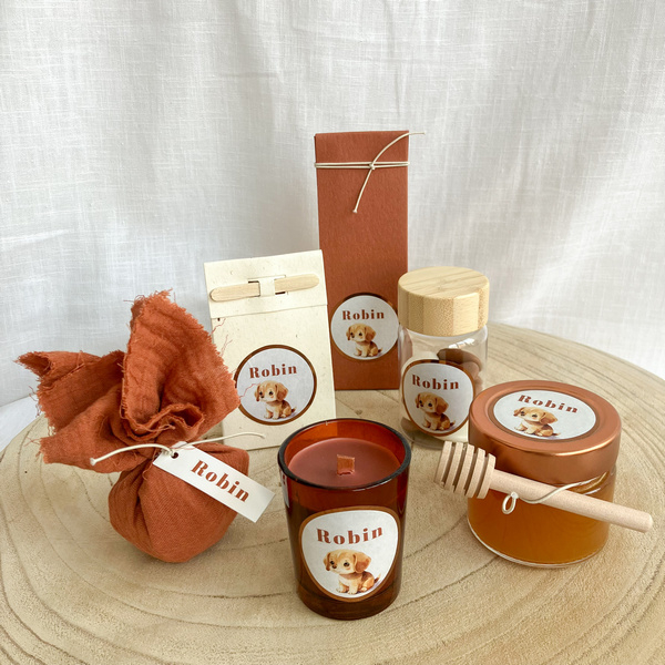 Doopsuikerset Robin - Roestkleurig met schattig hondje (60st)Doopsuikerset met Schattig Hondje – Roestbruin, Beige & Koper (60 stuks)Verras jouw gasten met deze elegante en speelse doopsuikerset met schattig hondje. Het warme kleurenpalet van roestbruin, beige, terracotta en koper…